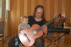 Ole ist gerade ein Jahr alt und beginnt seine "unendliche Spielerei" - vielleicht mit der Gitarre ?